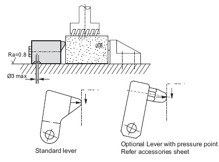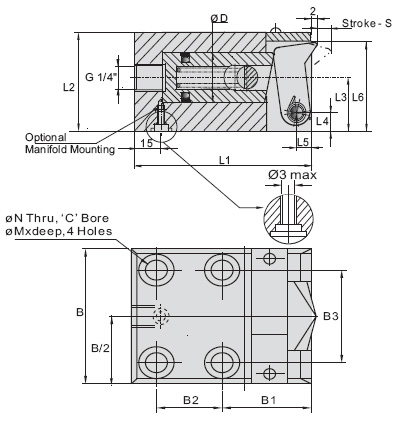 DESCRIPTION : This type of Low block cylinders are suitable for clamping work pieces from the sides where clamping is not possible from top. Hydraulically operated piston pushes the pivoted lever against the work piece. By positioning the pivot lever it is possible to have vertical push force to clamp the work piece firmly on to workrest.