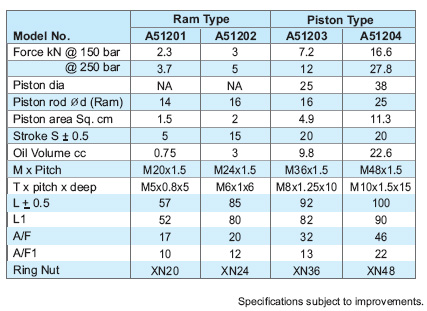 Double Acting Mini Threaded Cylinders are designed for heavy duty Hydraulic clamping forces. Hydraulic inlet port is at the bottom and declamping port is at the side.