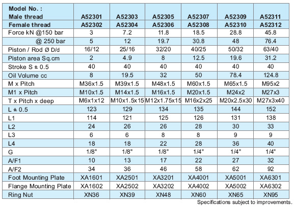 These cylinders can be threaded directly into manifold/ fixture body. Suitable for positioning, clamping or ejecting the work piece. These cylinders can be used in fixtures where space is a constraint. Special aluminium washer provides self sealing. Aluminium washer is included in the delivery.