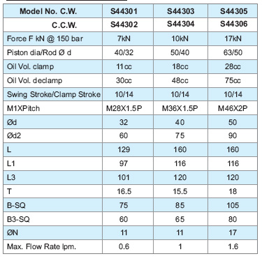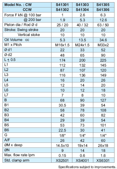 - Given forces are for the standard arm lever. Pressure & flow should be reduced if clamp arm length is increased (Refer Graph sheet No. G1).
