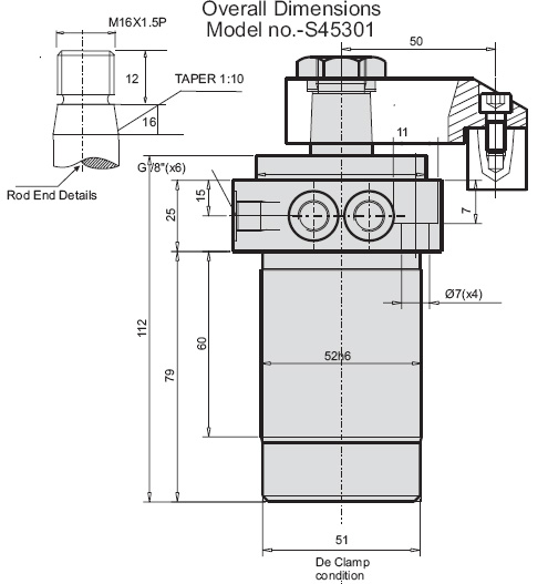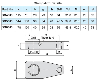 - Max. Pressure 200 bar for arm length 50 mm at clamp force 1.75 kN
