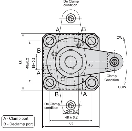 These Hydraulic Clamping elements are pull type swing cylinder, wherein a part of the total stroke is used to swing the arm (stroke to swing). The shorter part is available as clamping stroke. These swing clamps are having a special feature during the rotation (swing), it covers 10mm stroke and thereafter travels vertically for 14mm clamping stroke. The total stroke is 24mm.