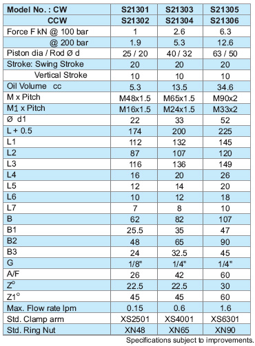 - Given forces are for the standard arm lever. Pressure and flow should be reduced if clamp arm length is increased (Refer Graph sheet No. G1).