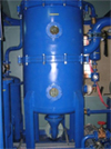 IONIC REACTION COLUMN : It will be fabricated out of MS sheets, plates. It will contain sufficient quantity of activated alumina (** Kgs) for reduction of acidity level of oil to less than 0.05 mg of KOH / gm oil. It will be provided with, By-pass arrangement when not necessary & Alumina Cage (fabricated with CRCA caps & SS wire mesh) for easy replacement. It is fitted on the plants of flow rate > 2400 LPH as a standard fitting and bypass arrangement.