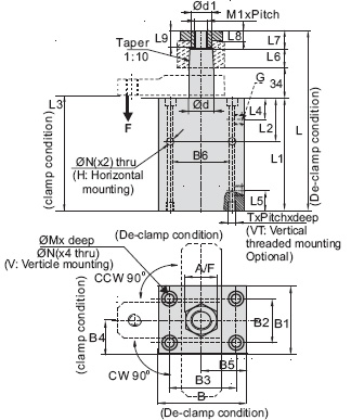 - Given forces are for the standard arm lever. Pressure & flow should be reduced if clamp arm length is increased (Refer graph sheet page No. G1).