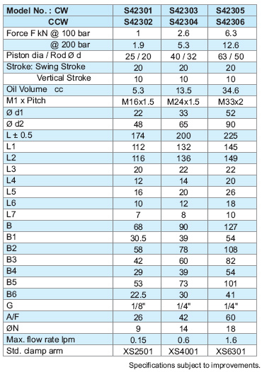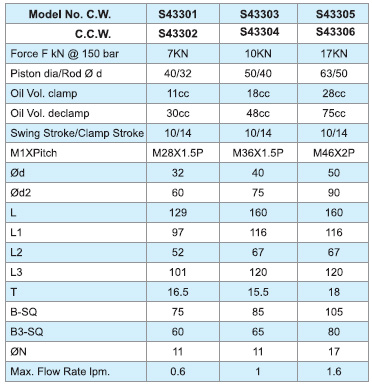 - Given forces are for the standard arm lever. Pressure & flow should be reduced if clamp arm length is increased (Refer Graph sheet No. G1).