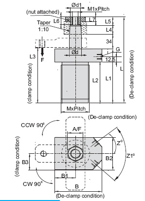- Actual clamping takes place only when the Cylinder has completed its 90 swing stroke.